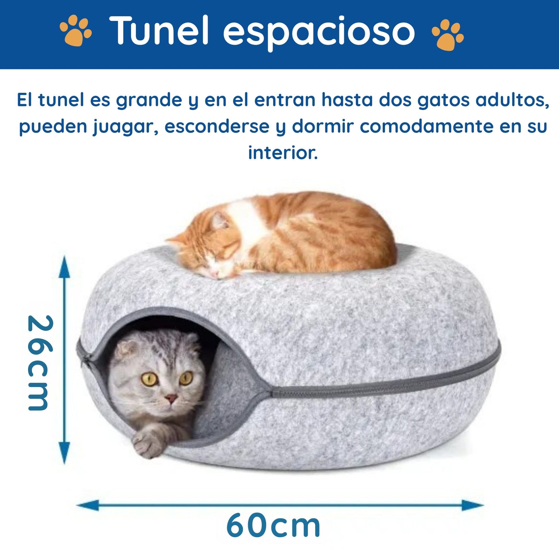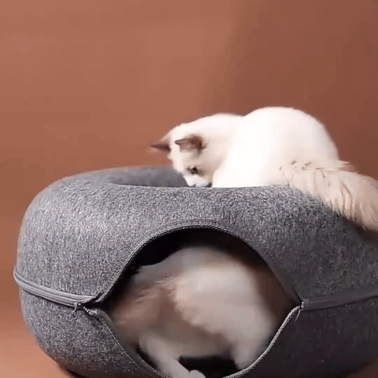 Sirve como rascador, túnel divertido y cueva oculta para echarse su siesta.